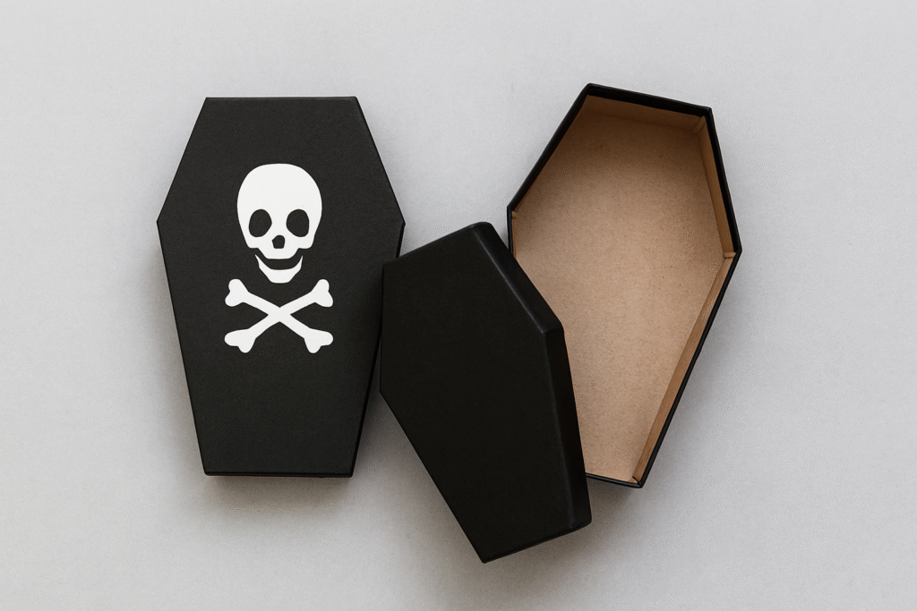 A pull-tab opening reveals the product like an ominous secret. Interior panels printed with hidden messages or recipe ideas surprise customers and encourage social sharing. Limited-edition coffin packaging makes for highly shareable Instagram posts and drives online engagement.